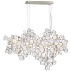Intricate champagne-silver wire frame adorned by delicately hand strung glass wafers. Organically clustered together in an abstract arrangement, the light from the Trento catches from various angles casting beautiful shadows across the room.