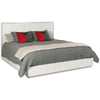 A handsome headboard is veneered with quarter sawn oak in an intricate pattern surrounded by a delicate molding joined by low side rails to accommodate queen size bedding.