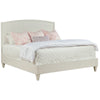 A curved top tail rests above a panel fielded in figured cherry raised by tapering legs. Crafted from hardwood solids.