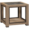The Cooper Collection of tables is made of oak solids and veneers with a modern interpretation of French Industrial styling. The black metal accents frame the sides of the table and feet while the top is a vintage window frame look with set-in clear glass.