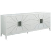 This impressively scaled case creates its interest in metal inlaid doors done in a radiating pattern that frame quartered oak veneers. Each pair of doors is centered with large plate pulls beautifully textured and finished in our artisan patina finish.