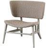 Cast aluminum lounge chair in Gravel finish with flat, woven acrylic rope in Stone or Bark.