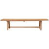 A charming rustic bench or low table for outdoor spaces. Constructed with teak solids, our design is inspired by the Arts and Crafts style movement from the mid 19th century. The rectangular top is elevated by angled legs and center beams.
