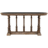 Gather around this pub table from the Architrave collection and experience Old World charm in a contemporary dining setting. The oval top is finished in sophisticated honed black stone. A stunning set of French neoclassical columns dazzles from below, featuring traditional acanthus and beading details. The simple beauty of pine with a rustic, hand-glazed finish updates this intricately crafted table for the modern aesthetic.