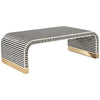Boasting a mesmerizing inlaid pattern of black resin, natural bone and shiny brass, the Beacon Cocktail Table is the definition of fabulous chic.