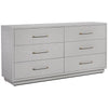 The clean lines of the Taylor 6-Drawer Chest are transformed into a statement piece thanks to a surface of faux linen and metal pulls.