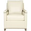 Kick back in style with this Liz Tilt Back Leather chair from Vanguard Furniture. Elegantly designed, this contemporary chair features Ambition cream leather upholstery lined with black silver nails. Its tapered wooden block feet feature a rustic, oiled java finish.
