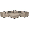 Casually elegant, this fully upholstered sectional is the epitome of today's Modern Fusion lifestyle. Its versatility allows for an unlimited combination of three distinctly designed pieces to create just the right live in sectional for any home. All pieces are perfectly sized and deeply comfortable, tailored to perfection in a neutral, menswear-inspired look with a textured tweed pattern that’s touchably soft. Contrasting accent pillows add additional style, fashioned in a deep gunmetal grey in both velvet and fine corduroy-like styles, as well as a contemporary styled black and white herringbone stitch. A cut-out boxing design around the outside back and a recessed wood plinth base in Simply Black complete the sectional's distinctive aesthetic style.