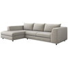Comfort meets mod in the form of the Comodo Chaise 2 Piece Sectional, offered in a selection of luxurious, neutral fabrics.