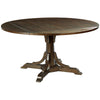 A round molded top has four fold under leaves that are mounted with brass hinges for a handy square to round size adjustment feature. The top rests over an octagonal central column and support brackets.