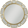 An elegant, round, metal mirror featuring our Antique Gold finish with antique glass panels surrounding a clean round mirror.