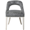 Uttermost's furniture combines premium quality materials with unique high-style design. With the advanced product engineering and packaging reinforcement, Uttermost maintains some of the lowest damage rates in the industry. Each product is designed, manufactured and packaged with shipping in mind. Perfect for dining, office, or vanity use, this open back accent chair features a charcoal and light gray animal print chenille with welt trim details over a solid wood frame in a lightly distressed off-white finish with light gray glazed distressing. Seat height is 20". Set of 2.