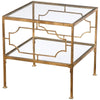 Uttermost cube tables combine premium quality materials with unique high-style design. With the advanced product engineering and packaging reinforcement, Uttermost maintains some of the lowest damage rates in the industry. Each product is designed, manufactured and packaged with shipping in mind. Featuring elegant forged iron decorated sides, this cube table acts as the perfect side table, or bunched as a coffee table. Finished in antique gold leaf with clear tempered glass top and gallery shelf.