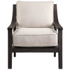 Uttermost's accent furniture combines premium quality materials with unique high-style design. With the advanced product engineering and packaging reinforcement, Uttermost maintains some of the lowest damage rates in the industry. Each product is designed, manufactured and packaged with shipping in mind. A casual combination with a modern take, this open back accent chair features a dramatically curved rustic hardwood frame with exposed grain under a rich walnut finish. Welt trimmed comfortable box cushions are a neutral beige linen blended fabric. Seat height is 18".