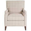 Thoroughly unwind while seated in this handsome Vanguard Collection Ginger Chair. Designed by Vanguard Furniture, this cozy armchair features delicate plaid Cole linen fabric upholstery and eight-way hand tied construction. This mid-century style chair had angled and tapered maple feet that boast a supreme walnut finish.