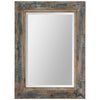 Uttermost's mirrors combine premium quality materials with unique high-style design. With the advanced product engineering and packaging reinforcement, Uttermost maintains some of the lowest damage rates in the industry. Each product is designed, manufactured and packaged with shipping in mind. Heavily distressed, slate blue frame with aged wood undertones and rustic ivory accents. Mirror has a generous 1 1/4" bevel.