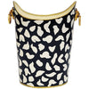 Oval wastebasket with raised ends and lion handles in black leopard. Hand painted.