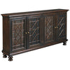 A delightful cabinet adapted from a 19th Century American original. Four glass doors are overlaid with fretwork mullions. A molded base is raised by multi-ringed turned feet. One adjustable shelf behind each pair of doors.