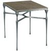 The unique shaping of the cast metal leg, flows from square to round and ends in a very delicate foot. The stretcher is a modified x form. The top is veneered in flaky oak.