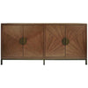 Superb styling and extraordinary detailing come together in the Emory four door cabinet. A showstopper in any room with its distinctive radial walnut finish and painted bronze legs and hardware. Stunning!